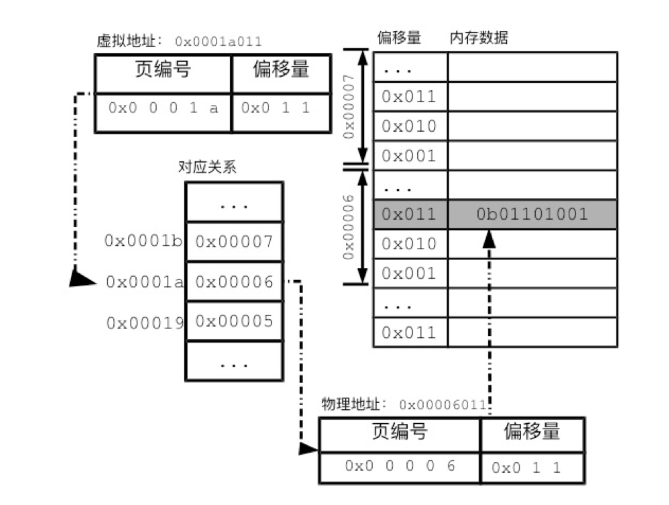無論是虛擬頁,還是物理頁,一頁之內(nèi)的地址都是連續(xù)的。這樣的話,一個虛擬頁和一個物理頁對應(yīng)起來,頁內(nèi)的數(shù)據(jù)就可以按順序一一對應(yīng)。這意味著,虛擬內(nèi)存地址和物理內(nèi)存地址的末尾部分應(yīng)該完全相同。大多數(shù)情況下,每一頁有 4096 個字節(jié)。由于 4096 是 2 的 12 次方,所以地址最后 12 位的對應(yīng)關(guān)系天然成立。我們把地址的這一部分稱為偏移量(offset)。偏移量實際上表達了該字節(jié)在頁內(nèi)的位置。地址的前一部分則是頁編號。操作系統(tǒng)只需要記錄頁編號的對應(yīng)關(guān)系。