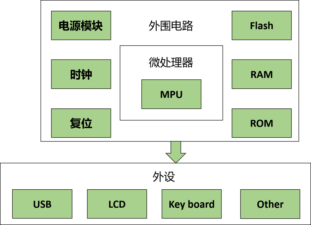 嵌入式系統(tǒng)通常由嵌入式處理器、外圍設備、嵌入式操作系統(tǒng)和應用軟件等幾大部分組成。