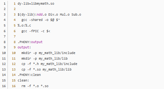 生成.o文件之后,不再使用ar打包而是在gcc 選項(xiàng)之后添加shared下面依舊利用自動(dòng)化構(gòu)建工具(先生成.o在整合生成.so)與靜態(tài)庫(kù)生成不同的是,動(dòng)態(tài)庫(kù)完全由gcc就能完成