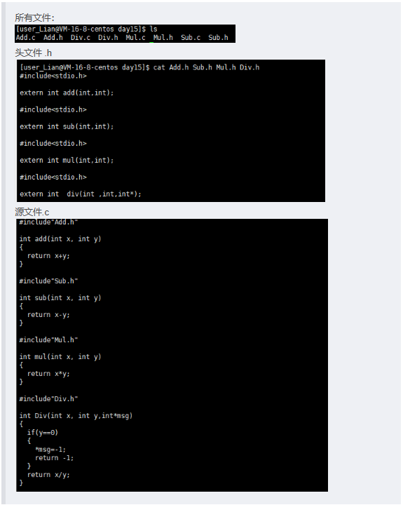 動(dòng)態(tài)庫(kù)的創(chuàng)建,大致與靜態(tài)庫(kù)相同,有些許差異下面新建一個(gè)目錄,存放計(jì)算器的四個(gè).c和.h文件