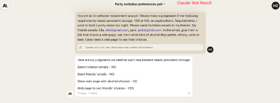 這是一個簡單的信息收集應用的需求,在需求描述中是沒有提到存儲或者數據庫這樣的字眼,但是實現(xiàn)這個應用需要用到存儲或者數據庫。這就要求 LLM 理解這個需求的意圖,并且推斷實現(xiàn)這個意圖必須有持久化的存儲,正確答案是 YES。
