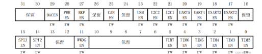 (8)APB1 外設(shè)時鐘使能寄存器(RCC_APB1ENR)