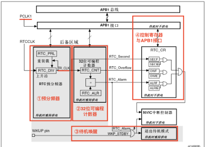 (2)RTC的APB1單元還包含一組16位寄存器,可通過APB1,總線對其進(jìn)行讀寫操作。